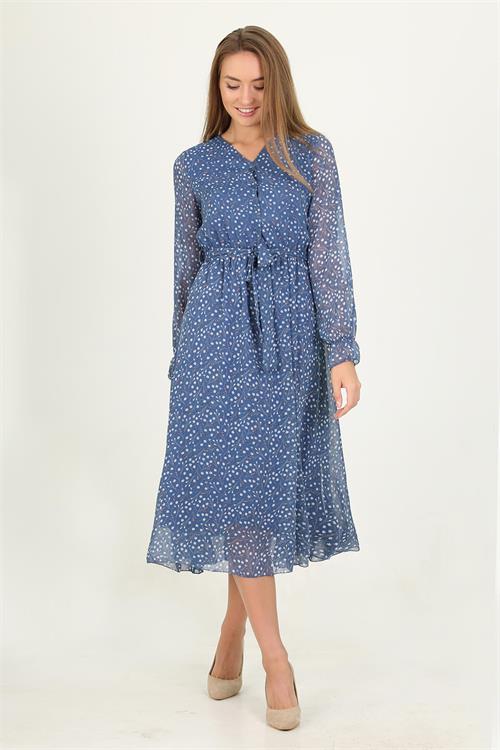 This simple but elegant dress radiates grace and refinement. The stylish midi dress features transparent long sleeves, v-neck and a belted waist.