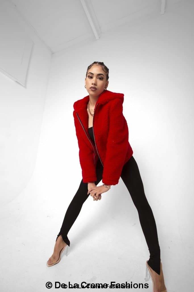A hip length hooded coat with borg teddy finish. Available in many colours and comes from sizes UK 8 - 20. Fabric from Italy. Made in England. Fully lined inside. Features Zip fastening.